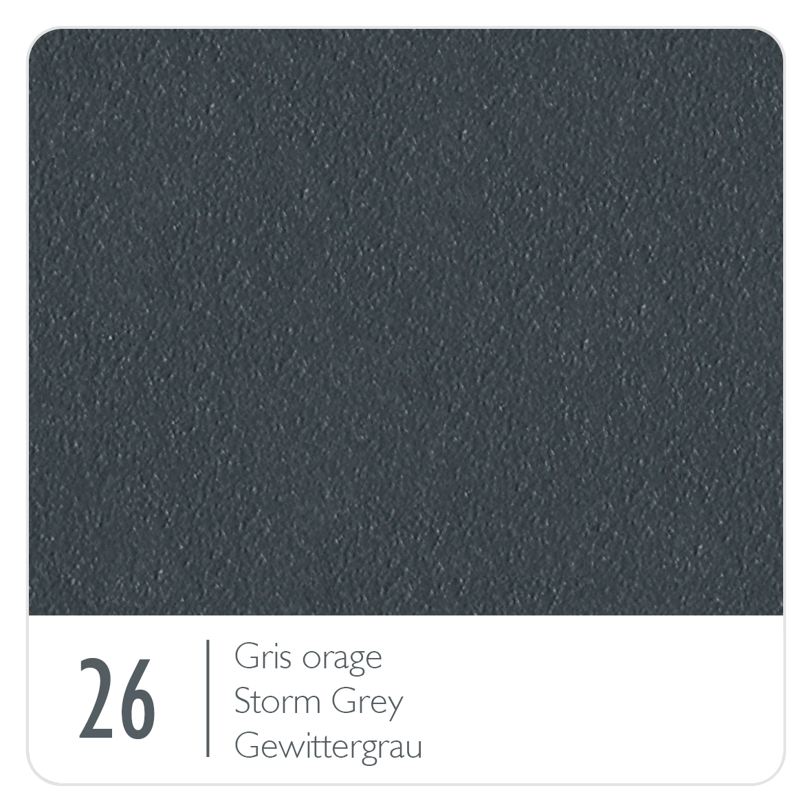 Storm Grey is a tempestuous mix of grey with subtle hints of blue, revealing its full splendour and delicacy when caught in the light, thanks to its textured, slightly glittery finish.