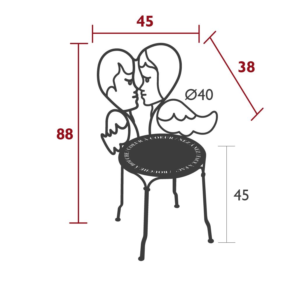 This designer chair, with its Belle Époque style, encapsulates the full breadth of Fermob’s metalwork expertise. The curved wire, and the hand-forged rings and wings on the armrests, are particularly eye-catching in their intricacy. Equally impressive are the laser-cut backrest, formed from two cherubs positioned face to face, and seat, which is reminiscent of a poem in the style of Cocteau: heart to heart, nose to nose, face to face, mouth to mouth. In fact, this metal armchair is so appealing you might have second thoughts about sitting on it.
