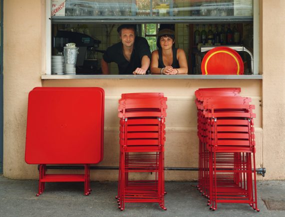Suitable for four people, it folds away when not in use to save space; in fact, that’s the reason behind these tables: cafés and bistros could put them away at night, thereby avoiding a tax on outside terraces.